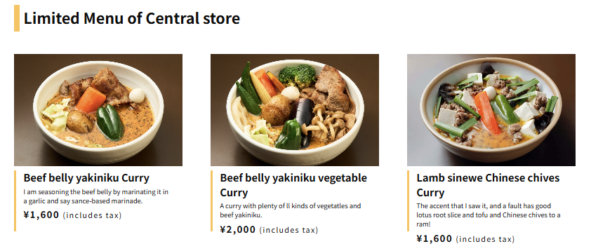 🐄 센트럴점(Central store) 한정: 소고기 야키니쿠 카레, 중국부추+양고기 카레 등