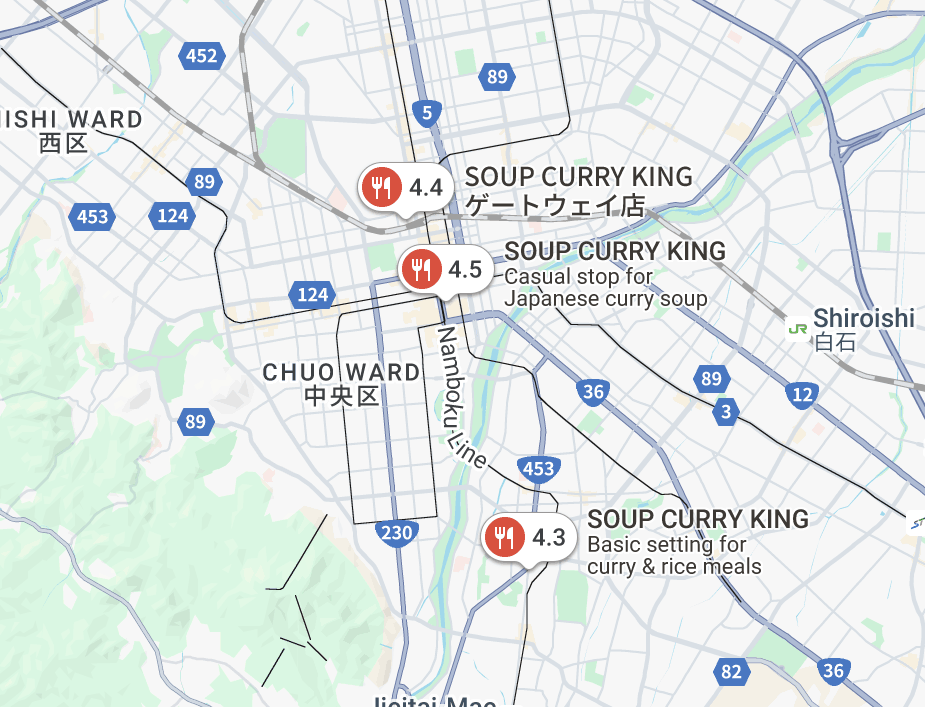 스프카레 킹은 홋카이도에 총 3개의 지점이 있는데,