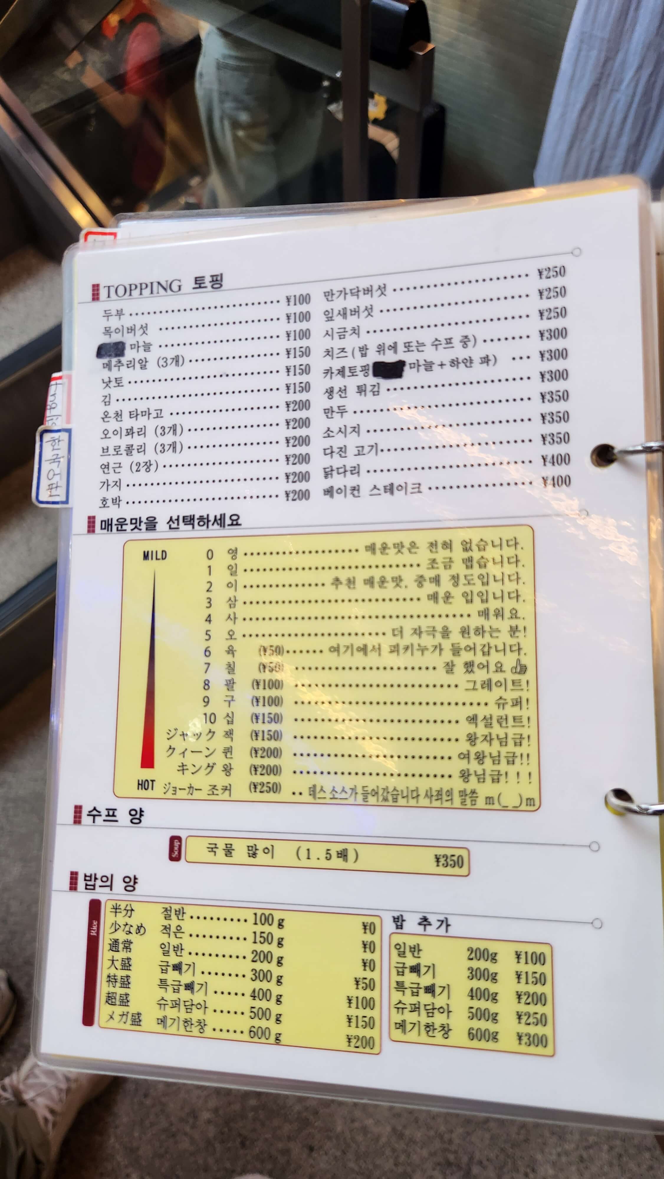 국물·밥 양 추가는 추가 요금으로 가능하니 참고하세요!